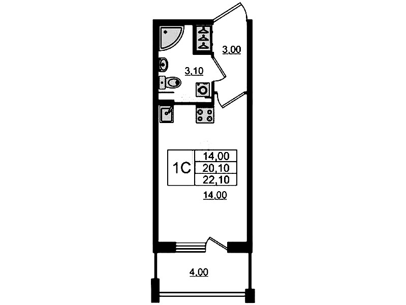 Квартира-студия на 4-ом этаже 20,1 кв.м