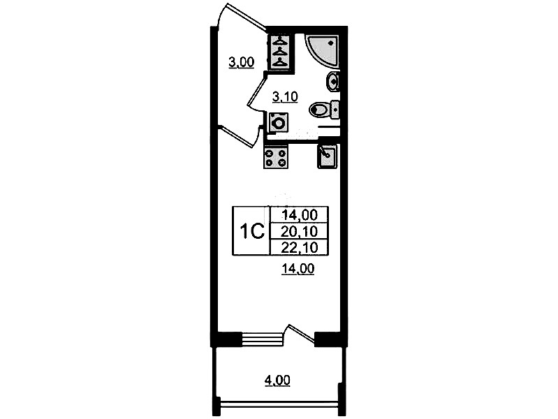 Квартира-студия на 4-ом этаже 20,1 кв.м