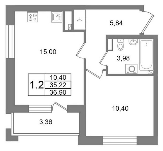 Однокомнатная квартира на 2-ом этаже 35,22 кв.м