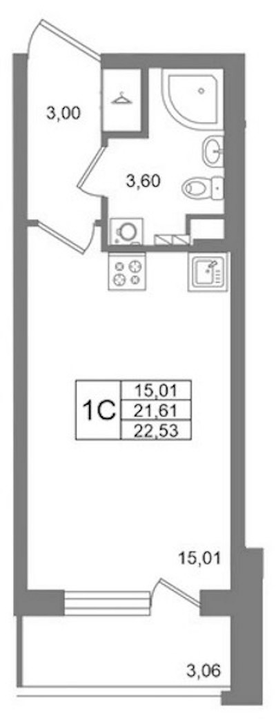 - Площадь21,61 м2