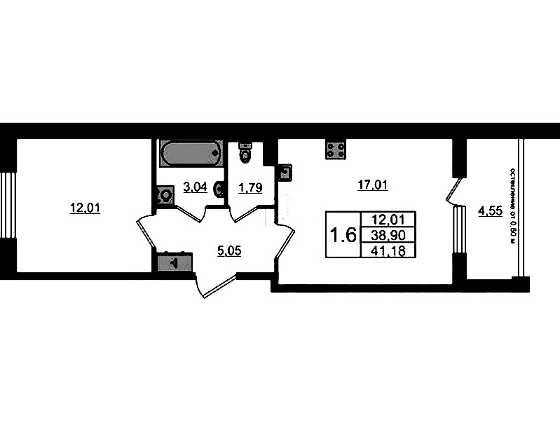 Однокомнатная квартира на 1-ом этаже 38,9 кв.м