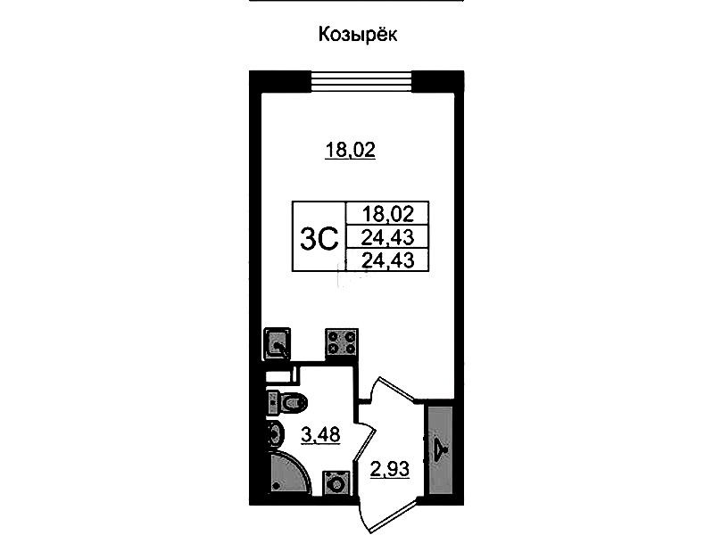 Квартира-студия на 2-ом этаже 24,1 кв.м
