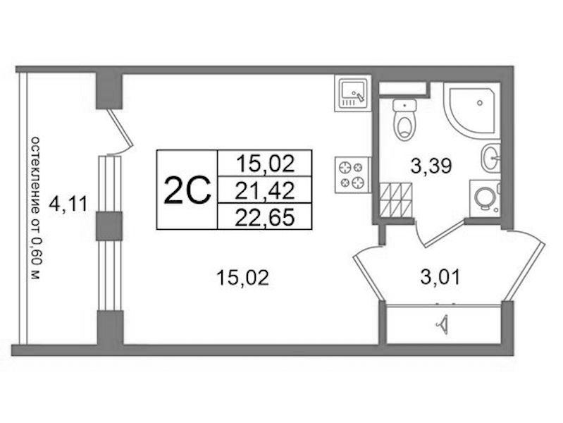 Квартира-студия на 4-ом этаже 21,42 кв.м