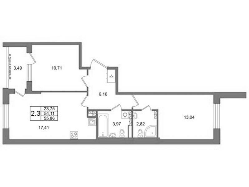 • Площадь54,11 м2