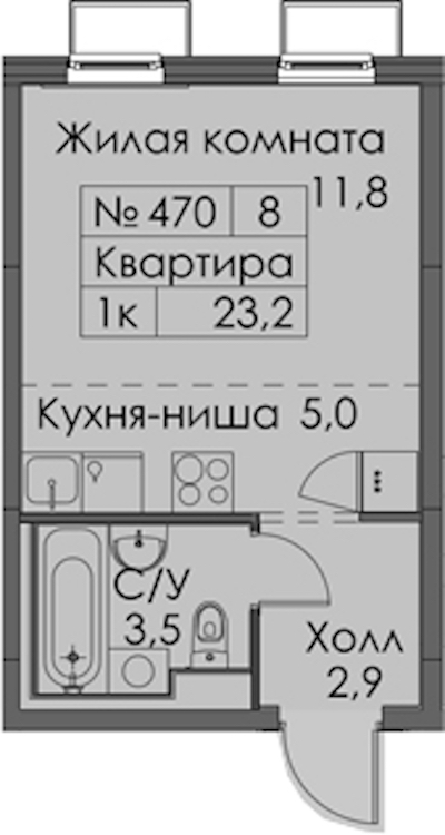 Квартира-студия на 7-ом этаже 23,2 кв.м