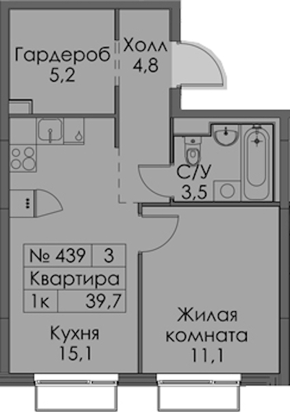 Однокомнатная квартира на 4-ом этаже 39,7 кв.м
