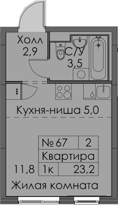 Квартира-студия на 3-ем этаже 23,2 кв.м