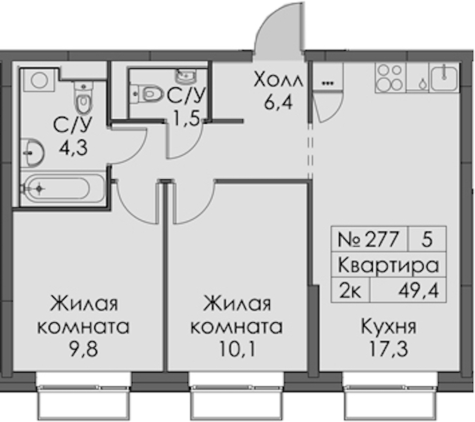 - Площадь49,4 м2