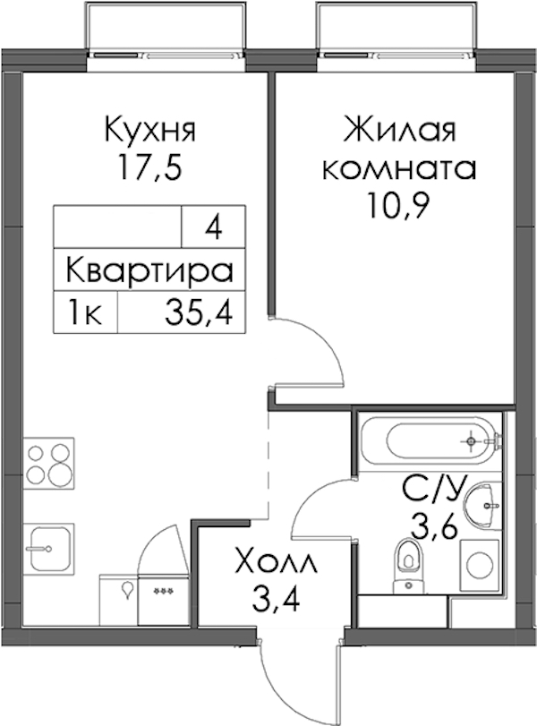 - Площадь35,4 м2