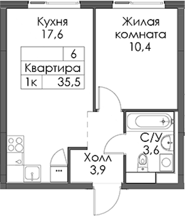 Однокомнатная квартира на 11-ом этаже 35,5 кв.м