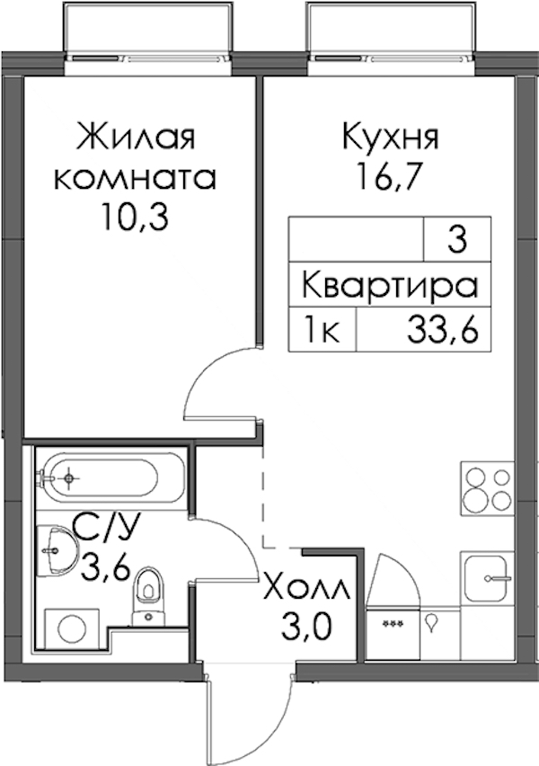 Однокомнатная квартира на 11-ом этаже 33,6 кв.м