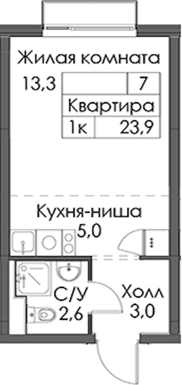Квартира-студия на 8-ом этаже 23,9 кв.м