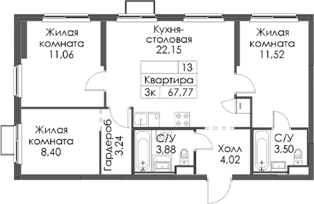 - Площадь67,77 м2