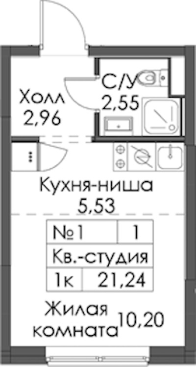 Квартира-студия на 1-ом этаже 21,24 кв.м