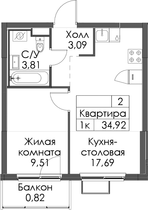 - Площадь34,92 м2