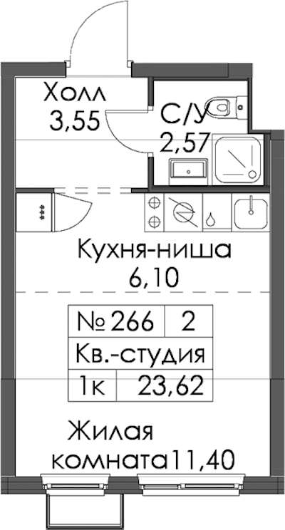 Квартира-студия на 2-ом этаже 23,62 кв.м