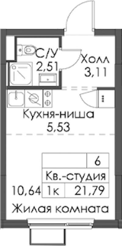 Квартира-студия на 12-ом этаже 21,79 кв.м