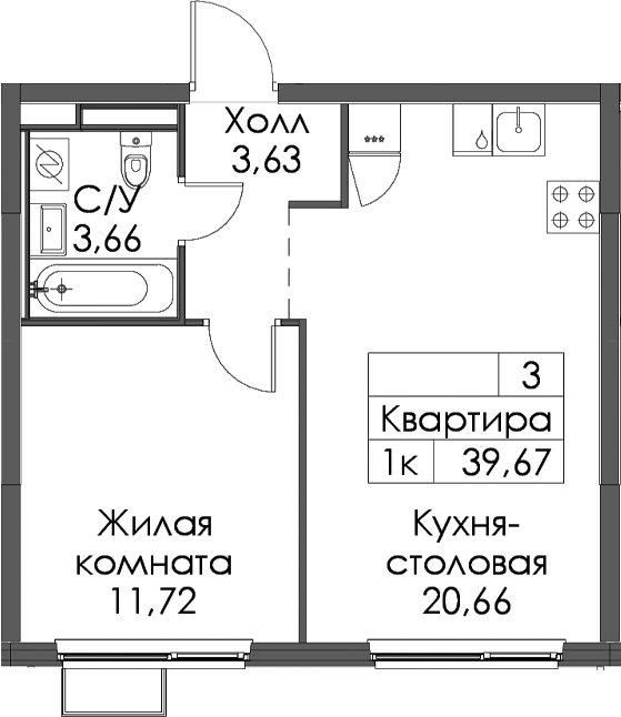 - Площадь39,67 м2