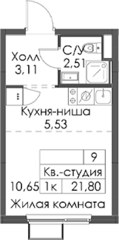 Квартира-студия на 2-ом этаже 21,8 кв.м