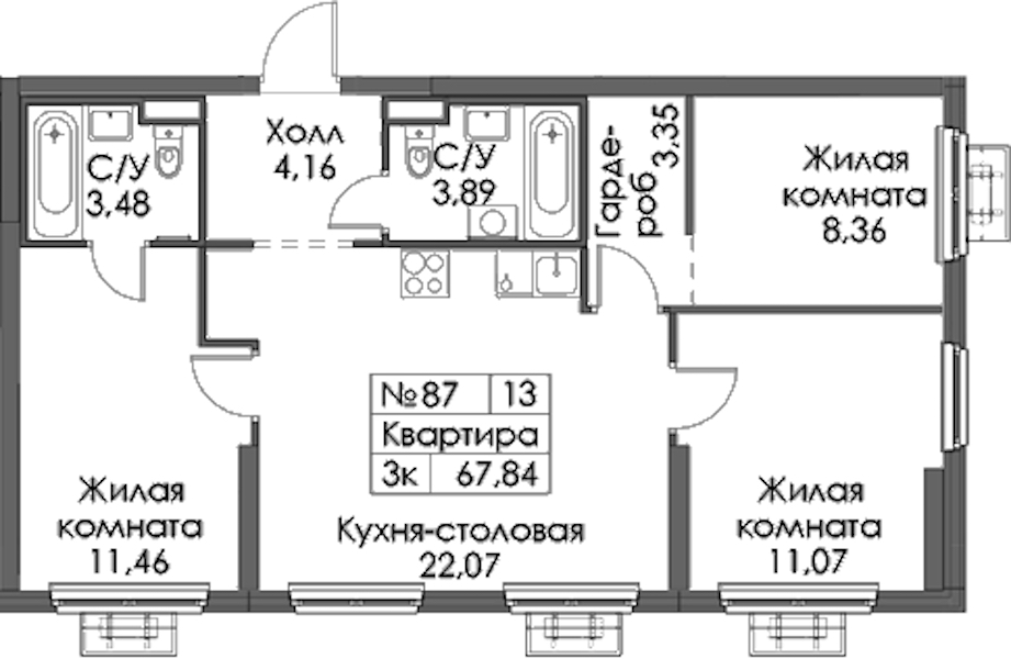 • Площадь67,84 м2