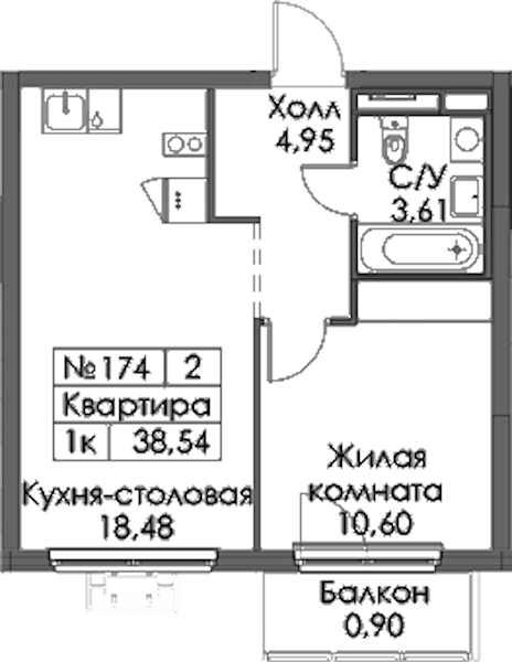 - Площадь38,54 м2